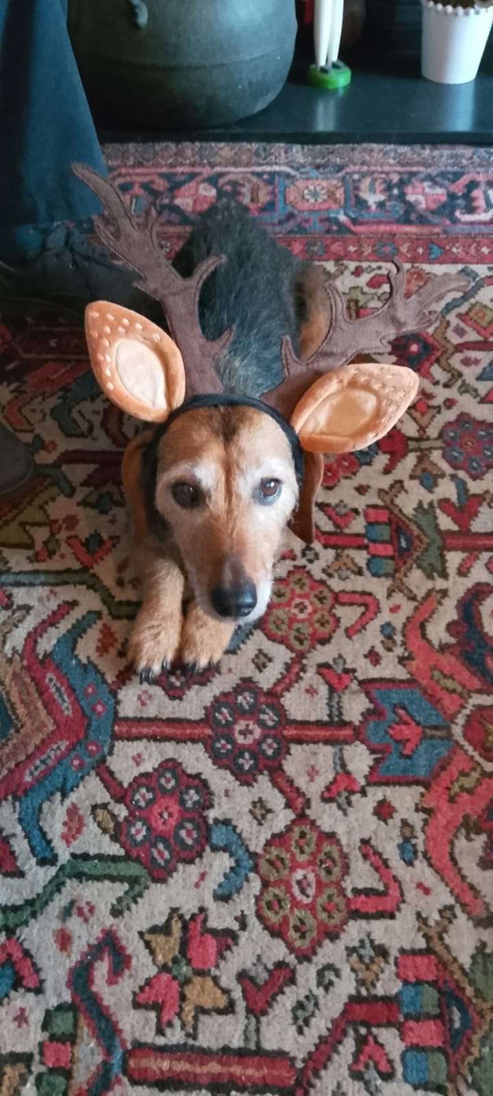What are your resolutions, if any? Whitney is ready to put her best paw forward in search of more snacks and wuzzes. We wish you a very happy 2026. x